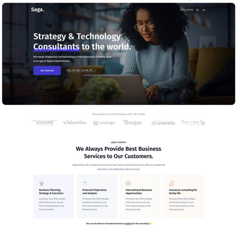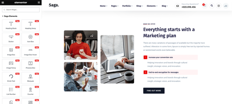 Saga is based on in-depth research into Business & Niche field, to deliver all needed layouts and blocks.
